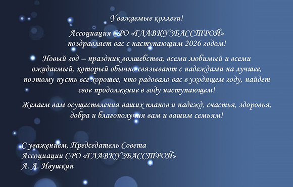 2025-12-09: 24 декабря 2025 года в 11.00 состоится Общее собрание членов Ассоциации СРО «ГЛАВКУЗБАССТРОЙ» 2025-12-03: Министерством строительства и ЖКХ РФ утвержден приказом №655/пр от 27.10.2025 Порядок уведомления саморегулируемых организаций в области инженерных изысканий, архитектурно-строительного проектирования, строительства, реконструкции, капитального ремонта, сноса объектов капитального строительства о заключенных членом такой саморегулируемой организации договорах... 2025-10-31: Межрегиональный информационный центр совместно с Институтом стоимостного инжиниринга и контроля качества строительства (ИСИИККС) проводят ежегодное мероприятие для инженеров-сметчиков "Неделя Сметчика в Сибири" в г. Красноярск 08-12 декабря 2025 года. |